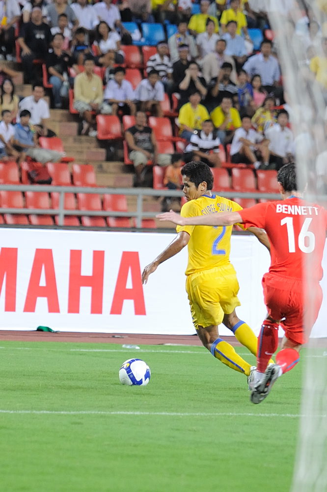 เป็นครั้งแรกที่ได้ถ่ายภาพกีฬาฟุตบอล ตื่นเต้นมาก ชาวบ้านเค้าแบกเลนส์ปืนใหญ่ 300-500 มม.กันเป็นแถบของผม 70-200 อันนิดเดียว แล้วเค้าไปเตะกันหน้าประตูฝั่งไทยแต่ผมอยู่หลังประตูสิงคโปร์ กะว่าไทยกระซวกนิ่มๆ ถ่ายได้ง่ายๆ แต่มันตรงกันข้าม โอยจะเป็นลมอยู่ไกลกันเป็นร้อยเมตร แต่ใจสู้ครับ