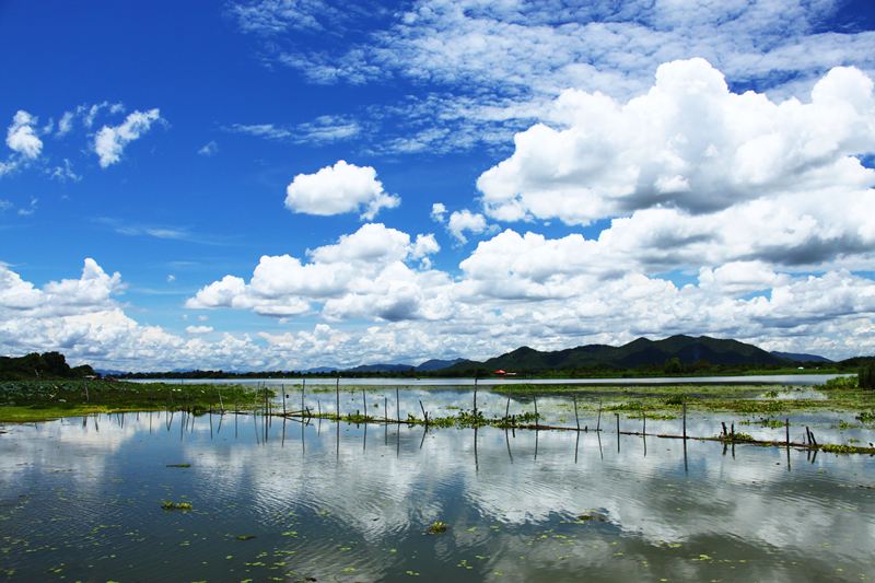 สถานที่แรกจริงๆจะไปวัดถ้ำเสือครับ แต่ขับเพลินเลยไปถึงริมเขื่อนวันฟ้าใสๆ